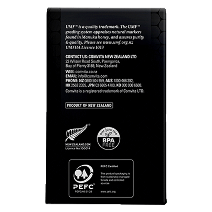 UMF ™ viết tắt của "Unique Mānuka Factor". Đây là thương hiệu đảm bảo chất lượng đo lường độc nhất cho mật ong Mānuka. Để được cấp phép từ Hiệp hội Mật ong UMF ™, mỗi nhà sản xuất phải đáp ứng các tiêu chí nghiêm ngặt và mật ong phải được kiểm tra, chứng nhận độc thông qua các phòng thí nghiệm độc lập. Comvita đã sở hữu giấy phép #1019.